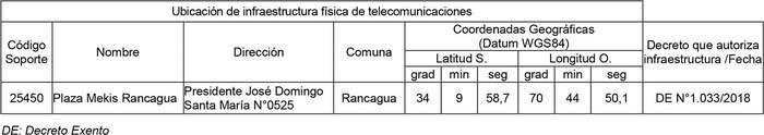 1. Autorízase a la concesionaria para modificar su concesión, individualizada en la letra g) de los Vistos, en el sentido de incorporar infraestructura física ya autorizada, conforme al decreto que se detalla en el siguiente cuadro: