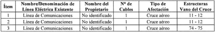 Tabla Nº 1 Identificación de cruces con líneas eléctricas existentes: