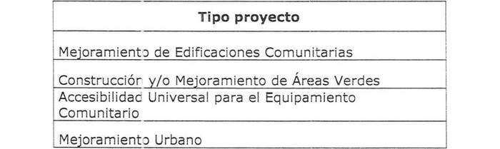 1. Llámase a postulación nacional en condiciones especiales, conforme al artículo 24 del DS N° 27 (V. y U.), de 2016, a Organizaciones Comunitarias y Juntas de Vecinos, para el otorgamiento de subsidios del Programa de Mejoramiento de Viviendas y Barrios, Capítulo Primero, para los tipos de Proyectos de Equipamiento Comunitario señalados a continuación: