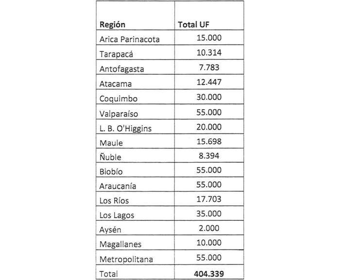 Los numerales 1 y 2 de la Resolución 2028, Vivienda, publicado el 10.01.2025, incrementa el monto de recursos disponibles para efectuar la selección de proyectos del llamado a postulación realizado mediante la presente resolución en 94.073,06 UF, quedando este en un total de 498.412,16 UF., asimismo incrementa y redistribute regionalmente los recursos del llamado a postulación realizado mediante la presente norma, quedando su distribución regional según se indica en la citada norma.