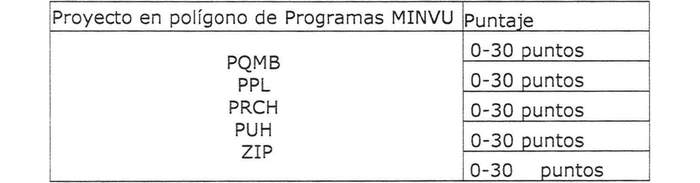 b) Puntaje para los grupos postulantes que se encuentren ubicados en los polígonos que se pueden visualizar en el siguiente enlace https://experience.arcgis.com/experience/eee71fcc62db466d91ad22feb994e876 y que corresponden a algunos de los programas señalados a continuación: