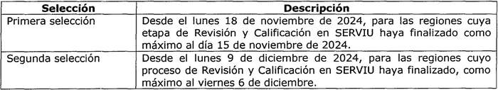 D.O. 23.12.2024selección Desde el martes 17 de diciembre de 2024, para las regiones cuyo proceso de Revisión y Calificación en Serviu haya finalizado, como máximo, el lunes 16 de diciembre.