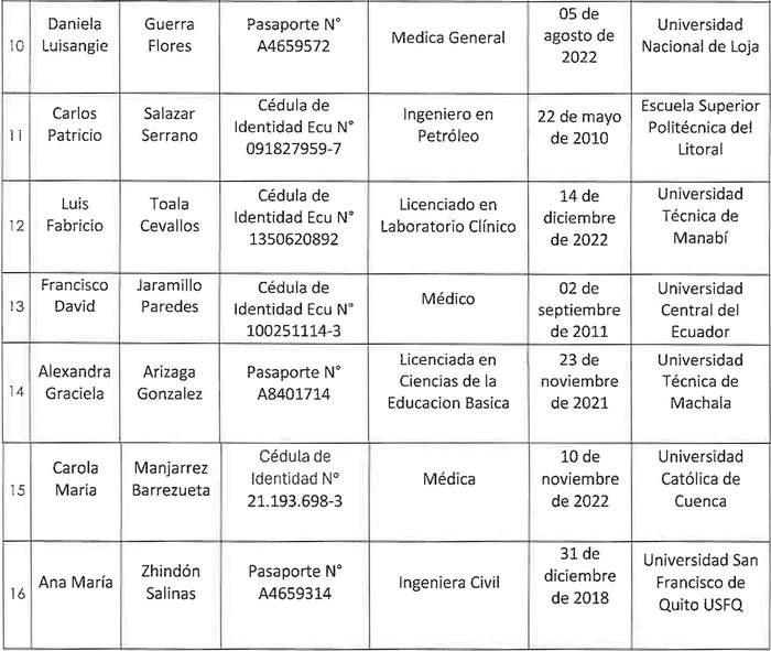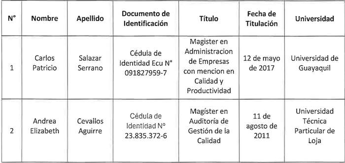 Artículo segundo: Reconózcase, en el marco del "Convenio de Reconocimiento Mutuo de Títulos Profesionales y Grados Académicos de Educación Superior entre la República de Chile y la República del Ecuador", suscrito el 15 de octubre de 2015, los títulos de postgrado obtenidos en las universidades ecuatorianas que se indican a continuación: