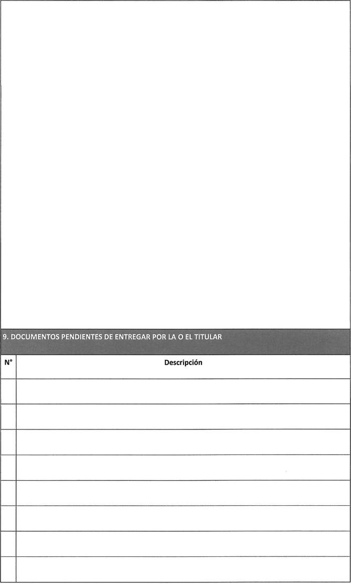 9. Documentos pendientes de entregar por parte de la o el titular.