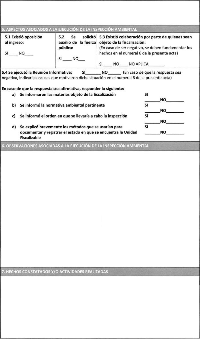 5.7. Observaciones asociadas a la ejecución de la inspección ambiental