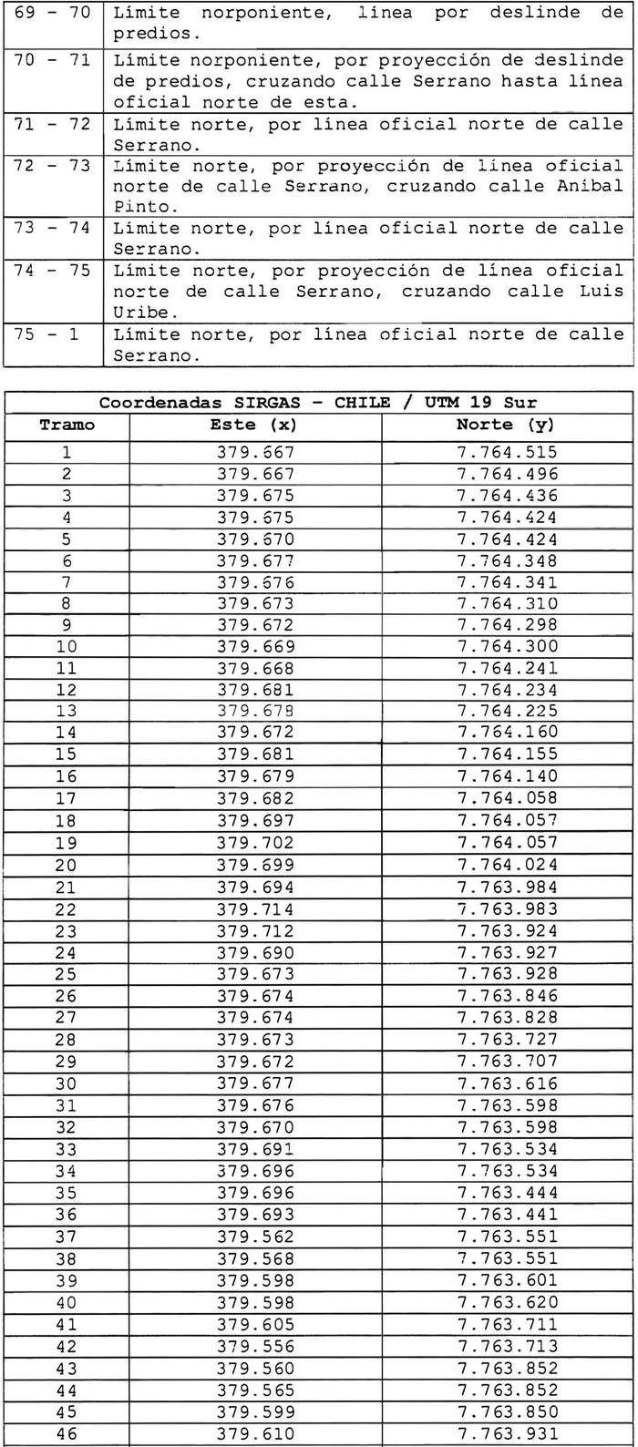 Artículo primero: Compleméntase el decreto N° 935 de fecha 25 de noviembre de 1975 y N° 1.293 de fecha 15 de noviembre de 1983, ambos del Ministerio de Educación, estableciendo como polígono de la Zona Típica Calle Baquedano y Plaza Prat, que comprende una superficie de 106.497 m2, de acuerdo con el plano N° 25-2020, cuya descripción y coordenadas son las siguientes: