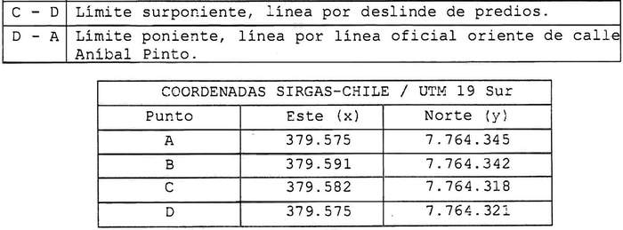 Artículo quinto: Compleméntase el decreto N° 505 del 25 de octubre de 1994 del Ministerio de Educación, estableciendo como polígono del Monumento Histórico al Edificio de la Antigua Firma "The Nitrate Agencies Limited", el espacio público que lo rodea contenido dentro de la Zona Típica, totalizando una superficie de 883 m2, de acuerdo al plano N° 28-2020, cuya descripción de límites y coordenadas son: