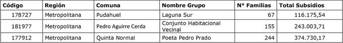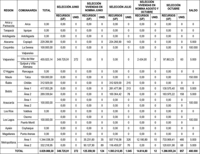 El detalle de los recursos comprometidos por concepto de subsidio para las postulaciones seleccionadas en el resuelvo anterior y que por este acto se asignan, se informa en el cuadro que se adjunta como anexo y que forma parte integrante de la presente resolución.