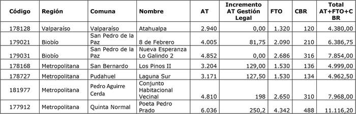 i. En el caso de los Servicios de Asistencia Técnica, de acuerdo con el número de familias postulantes que se beneficiarán por esta resolución, considerando los recursos para Asistencia Técnica descritos en las tablas insertas en los números 1.1 y 1.2 del numeral 1 del artículo 3º de la citada resolución. Se adiciona además 1 UF por familia, considerando lo señalado en el segundo inciso, del número 1.1. del numeral 1 del citado artículo.