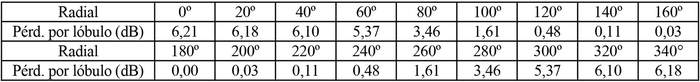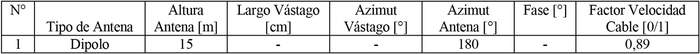 - Arreglo de antena de acuerdo a la siguiente tabla: