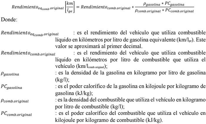 a. Para el caso de vehículos que utilicen combustible líquido, la equivalencia estará dada por la siguiente expresión: