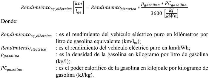 b. Para el caso de vehículos eléctricos puros, la equivalencia estará dada por la siguiente expresión:
