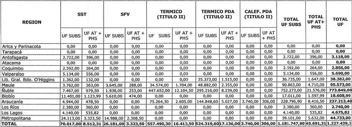 2. Comprométense los recursos para la nómina complementaria del tercer proceso de selección del llamado de Eficiencia Energética 2023 para proyectos del Título II, Mejoramiento de la Vivienda, del Programa de Protección del Patrimonio Familiar, destinados a Proyectos de Obras de Innovación de Eficiencia Energética, de Acondicionamiento Térmico de Viviendas, tanto en su línea general como en el marco de los planes de Descontaminación Atmosférica (PDA), los que se destinarán al financiamiento de los subsidios y al pago de los servicios de Asistencia Técnica, según la distribución por título y por región, señalada en el siguiente cuadro: