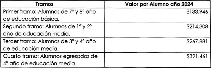 FIJA VALORES DE LA SUBVENCIÓN ANUAL EDUCACIONAL PRO-RETENCIÓN DE ALUMNOS PARA EL AÑO 2024