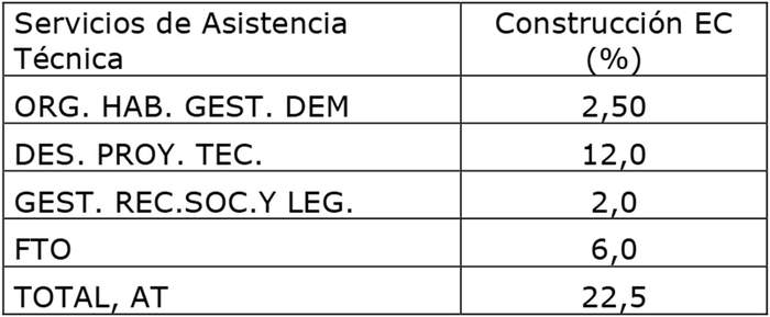 nas que se encuentren dentro de las zonas térmicas A y B establecidas en el mismo punto. 15. Pago de los Servicios de Asistencia Técnica. El Servicio de Vivienda y Urbanización pagará los honorarios de asistencia técnica, de acuerdo con el siguiente cuadro: