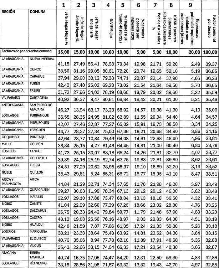D.O. 05.11.2024Nº 5 FACTORES DE PUNTAJE COMUNAL
