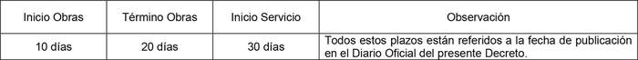 2. Los plazos serán los que se indican a continuación.