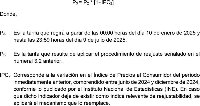 3.3 A partir de las 00:00 horas del día 10 de enero de 2025 y hasta las 23:59 horas del día 9 de julio de 2025, regirá la Tarifa por Pasajero Embarcado que resulte de aplicar el siguiente reajuste: