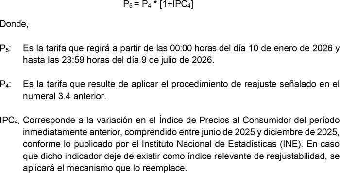 3.5 A partir de las 00:00 horas del día 10 de enero de 2026 y hasta las 23:59 horas del día 9 de julio de 2026, regirá la Tarifa por Pasajero Embarcado que resulte de aplicar el siguiente reajuste:
