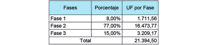3.4.1 El monto por concepto del desarrollo del "PID de Redes T1", cuyo monto total y definitivo, acordado a suma alzada, se indica en el numeral 2.2.1 del presente Convenio, será reconocido en la "Cuenta de Inversión y Compensación Convenio Ad - Referéndum N° 3" de acuerdo al avance del referido proyecto de ingeniería definitiva, con fecha del último día del mes en que el Inspector Fiscal apruebe cada una de las fases que componen el "PID de Redes T1" a que se refiere el numeral 1.6 del presente Convenio, conforme a los montos que se fijan en la siguiente Tabla N° 2: