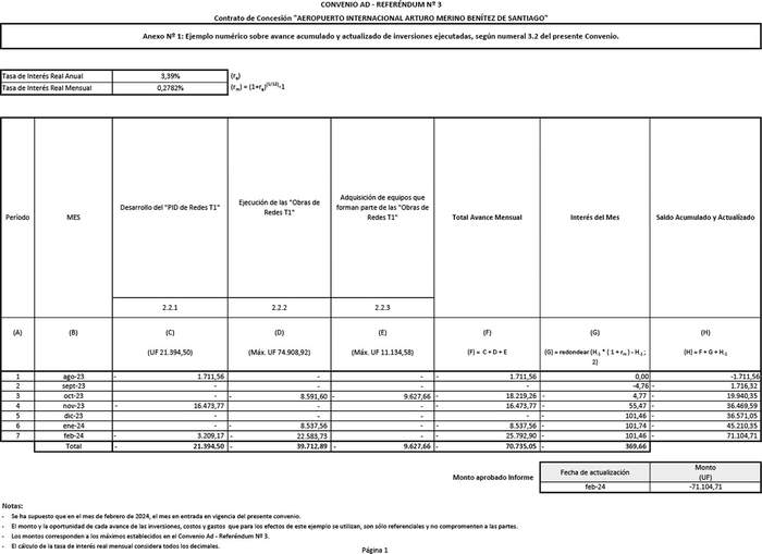 Anexo N° 1: Ejemplo numérico sobre el avance acumulado y actualizado de las inversiones ejecutadas, según numeral 3.2 del presente Convenio.