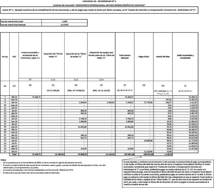 Anexo N° 2: Ejemplo numérico de la contabilización de las inversiones y de los pagos que realice la DGAC por dicho concepto, en la "Cuenta de Inversión y Compensación Convenio Ad - Referéndum N° 3".