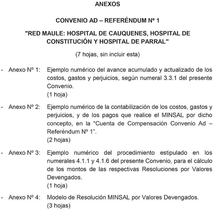 CONVENIO AD – REFERÉNDUM Nº 1 CONTRATO DE CONCESIÓN DE LA OBRA PÚBLICA FISCAL DENOMINADA "RED MAULE: HOSPITAL DE CAUQUENES, HOSPITAL DE CONSTITUCIÓN Y HOSPITAL DE PARRAL"
