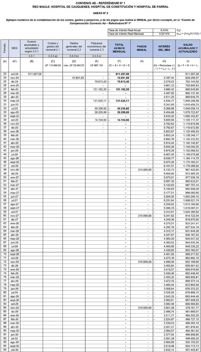 f. El último día hábil del mes de noviembre de 2031, el Minsal pagará a la Sociedad Concesionaria el saldo acumulado y actualizado de la "Cuenta de Compensación Convenio Ad – Referéndum Nº 1".