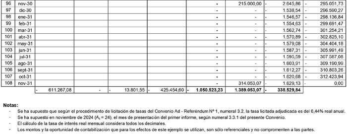 En caso de adjudicarse la licitación, la tasa mensual de actualización de la "Cuenta de Compensación Convenio Ad – Referéndum Nº 1" y la tasa de interés de la totalidad de las Resoluciones por Valores Devengados correspondientes, corresponderá a la tasa real mensual compuesta equivalente a la "Tasa de Licitación" referida precedentemente.