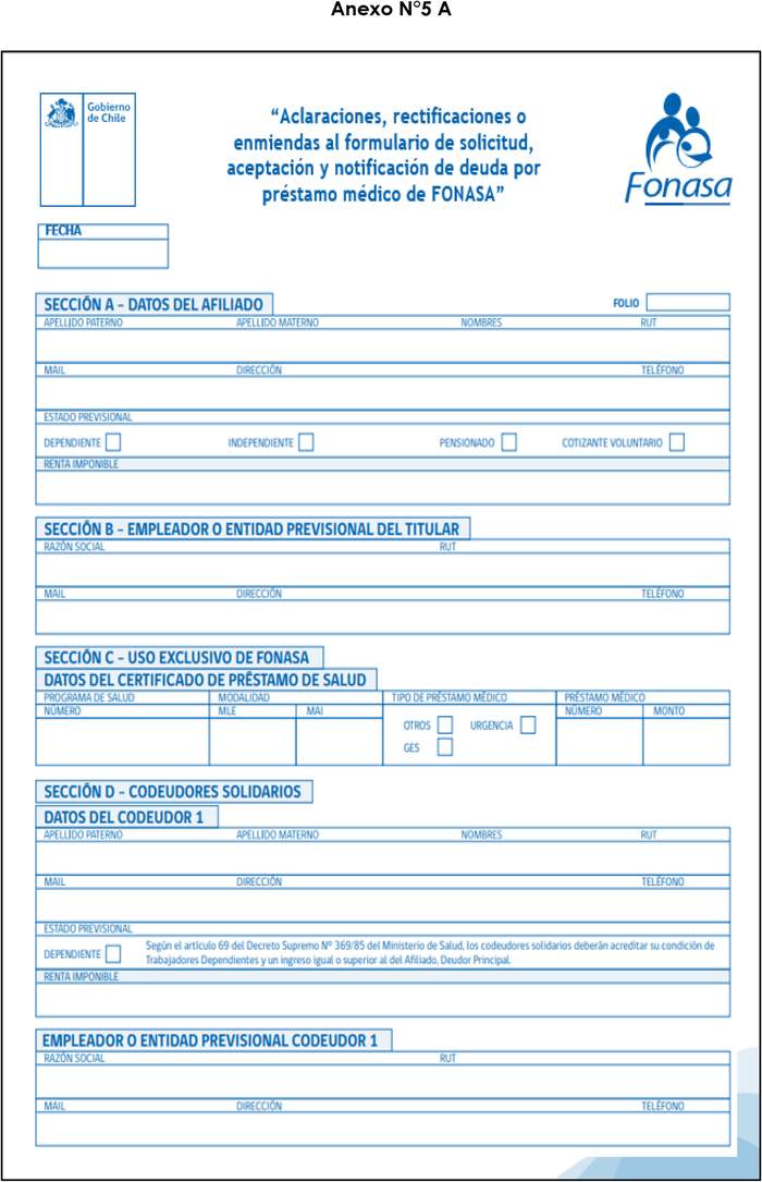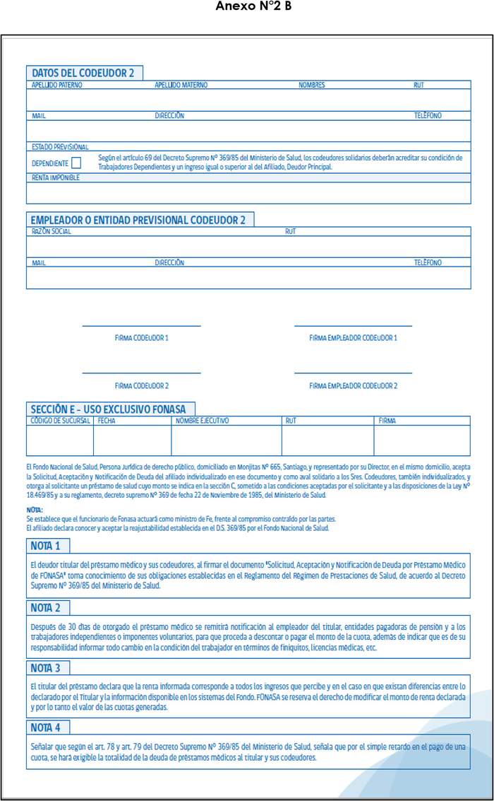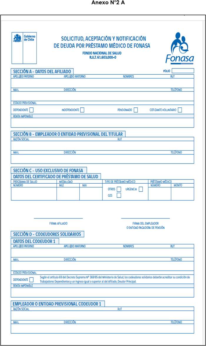 En el caso de aceptar, debe llenar una solicitud denominada "Solicitud, Aceptación y Notificación de Deuda por Préstamo Médico de Fonasa" (Anexo 2).