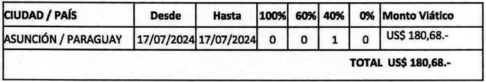 2. Páguese, a don Nicolás Grau Veloso, con ocasión de la referida comisión de servicio, un viático por un monto total de US$ 180,68.- de acuerdo con el siguiente detalle: