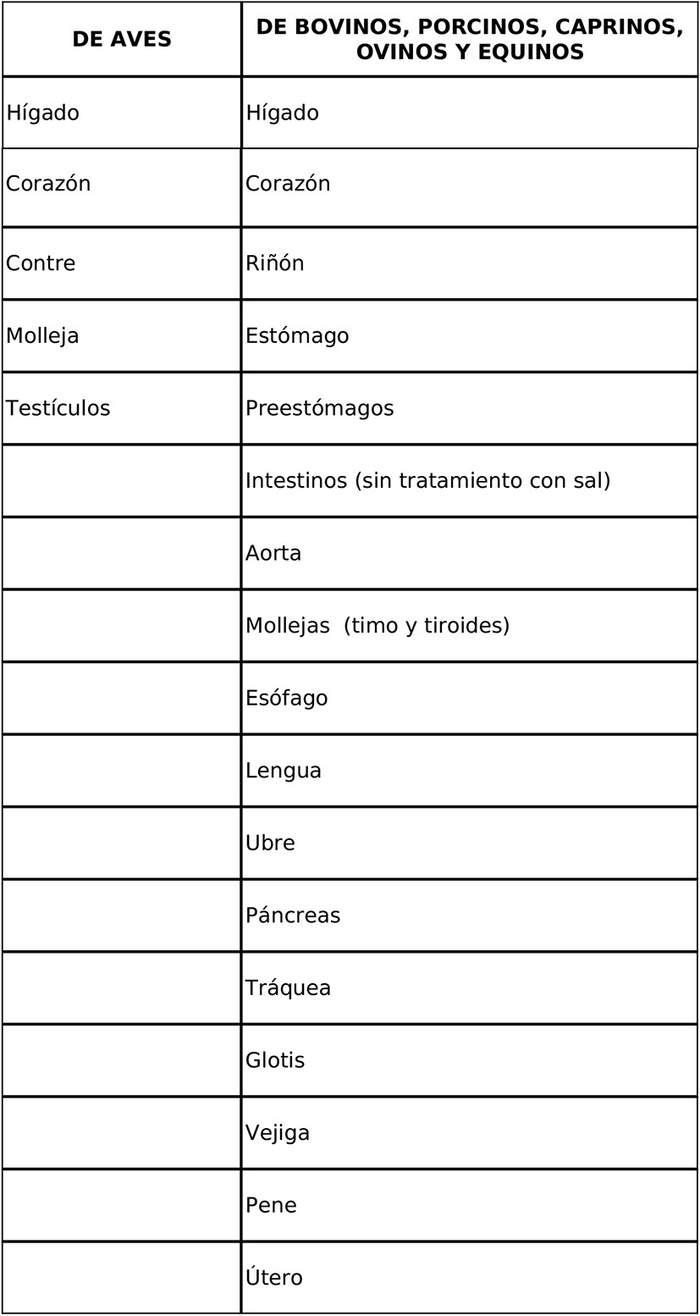 1. Para efectos de la presente resolución, las vísceras y subproductos comestibles incluyen los siguientes productos: