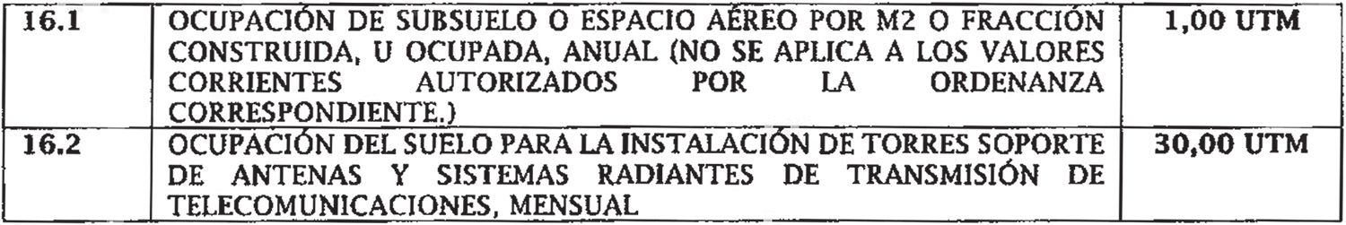 Artículo 16.- La ocupación de bienes nacionales de uso público, mediante construcciones permanentes autorizadas por el municipio, pagarán los derechos municipales que se indicarán a continuación. Este valor es anual.