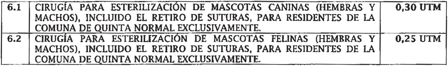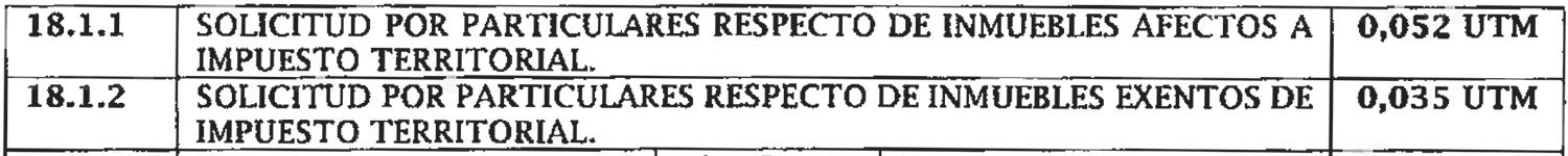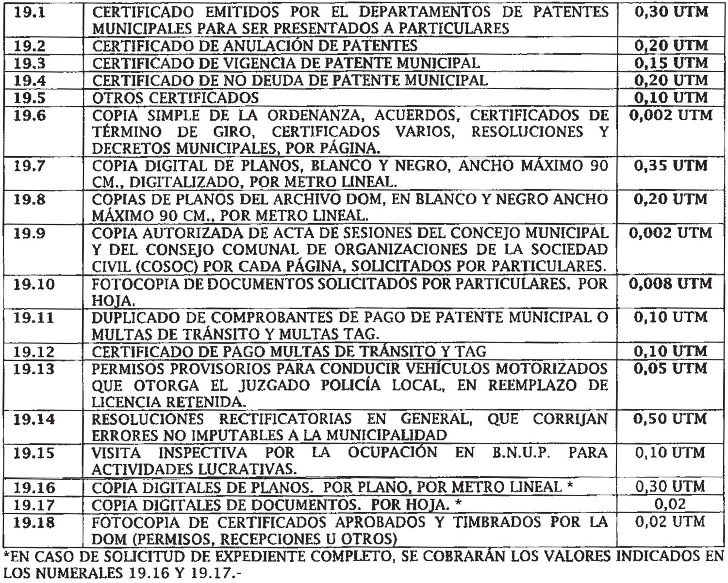 Artículo 19.- Los servicios que se indican más adelante pagarán los valores que en cada caso de señalan.