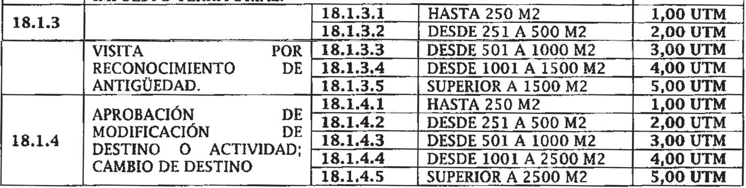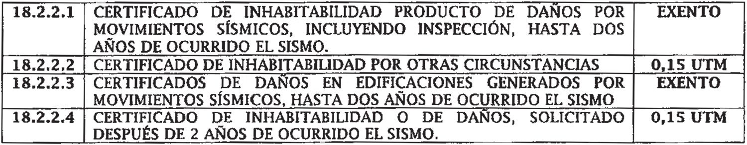 Artículo 18.- Los servicios, concesiones o permisos especiales relativos a la urbanización y construcción que se señalan más adelante, pagarán los valores, que en cada caso se indican: