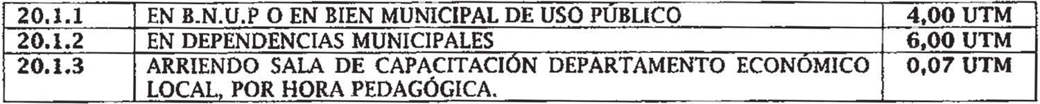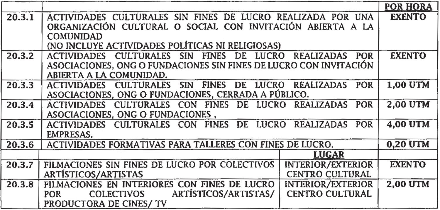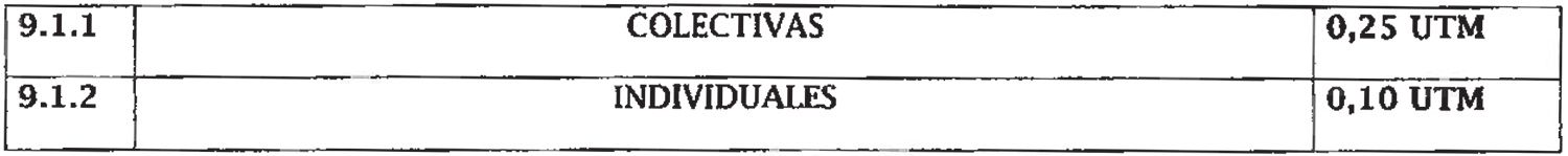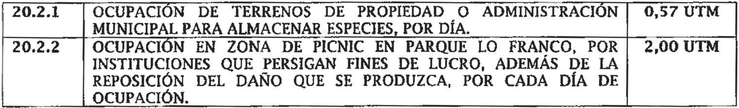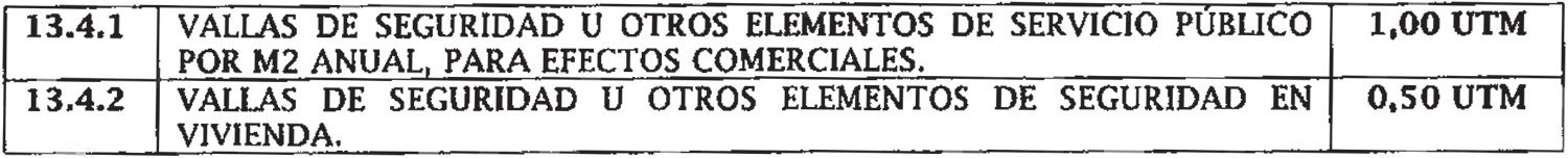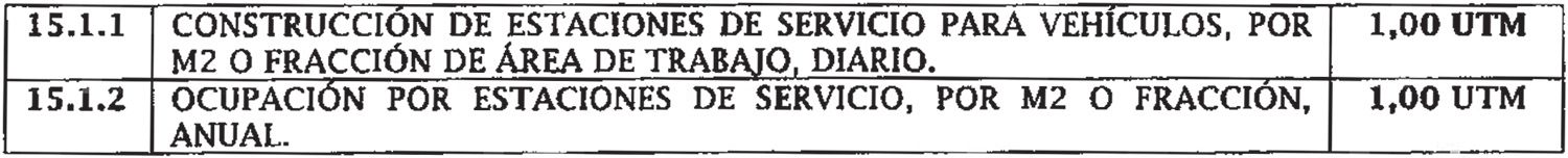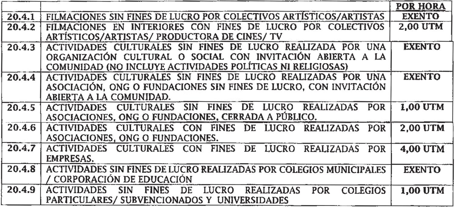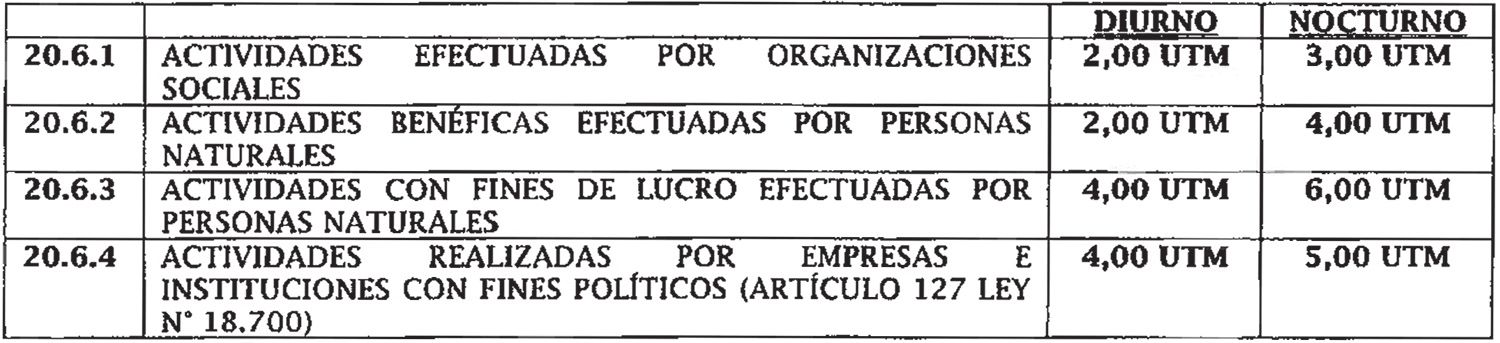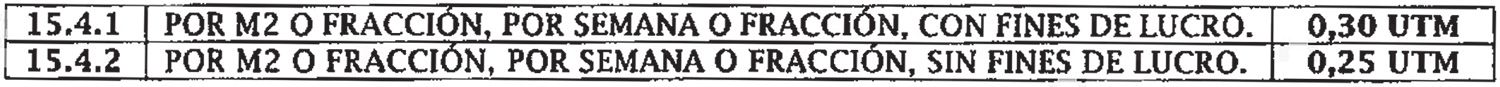 Se hace presente que los derechos indicados en este acápite pagan derechos por metro cuadrado y por día. Se usará la presente formula: (m² x días x UTM) + 1% del presupuesto.