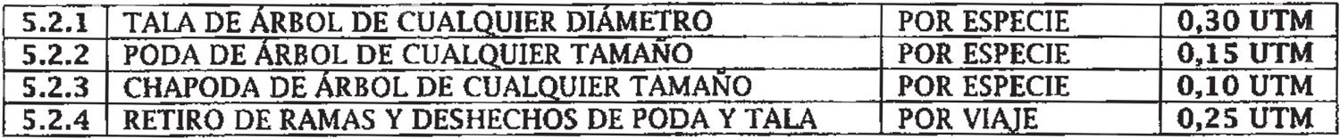 5.4.- Pauta de cobro por daños a árboles ocasionados por particulares o vehículos