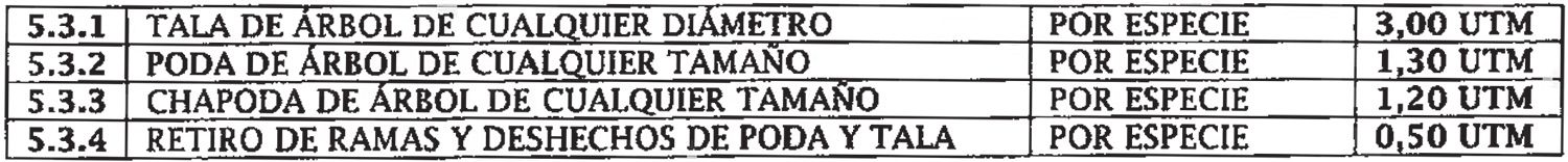 5.3.- Servicio de faena de tala y poda de un árbol al interior de inmuebles que desarrollen actividades con fines de lucro (fábricas, talleres, industrias, locales comerciales, centros médicos y otros similares).