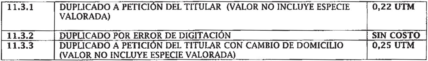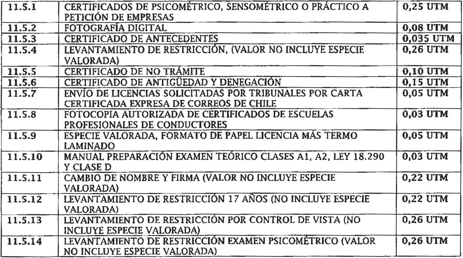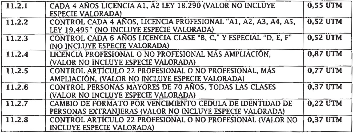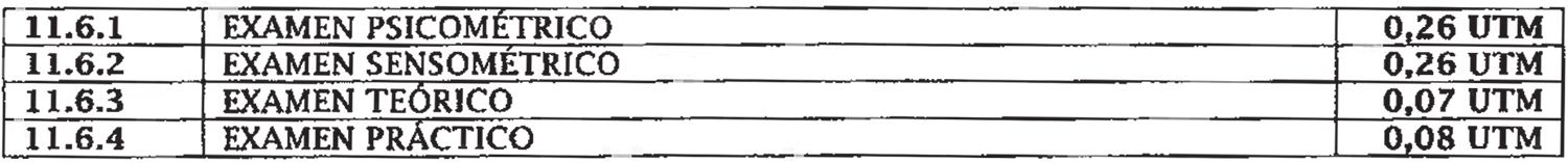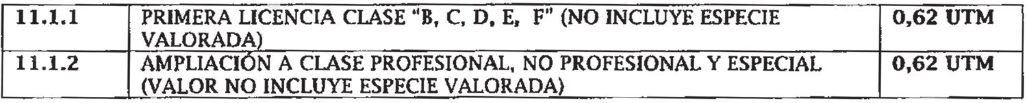 Artículo 11.- Licencias de conducir : Los derechos asociados a licencias de conducir son los siguientes:
