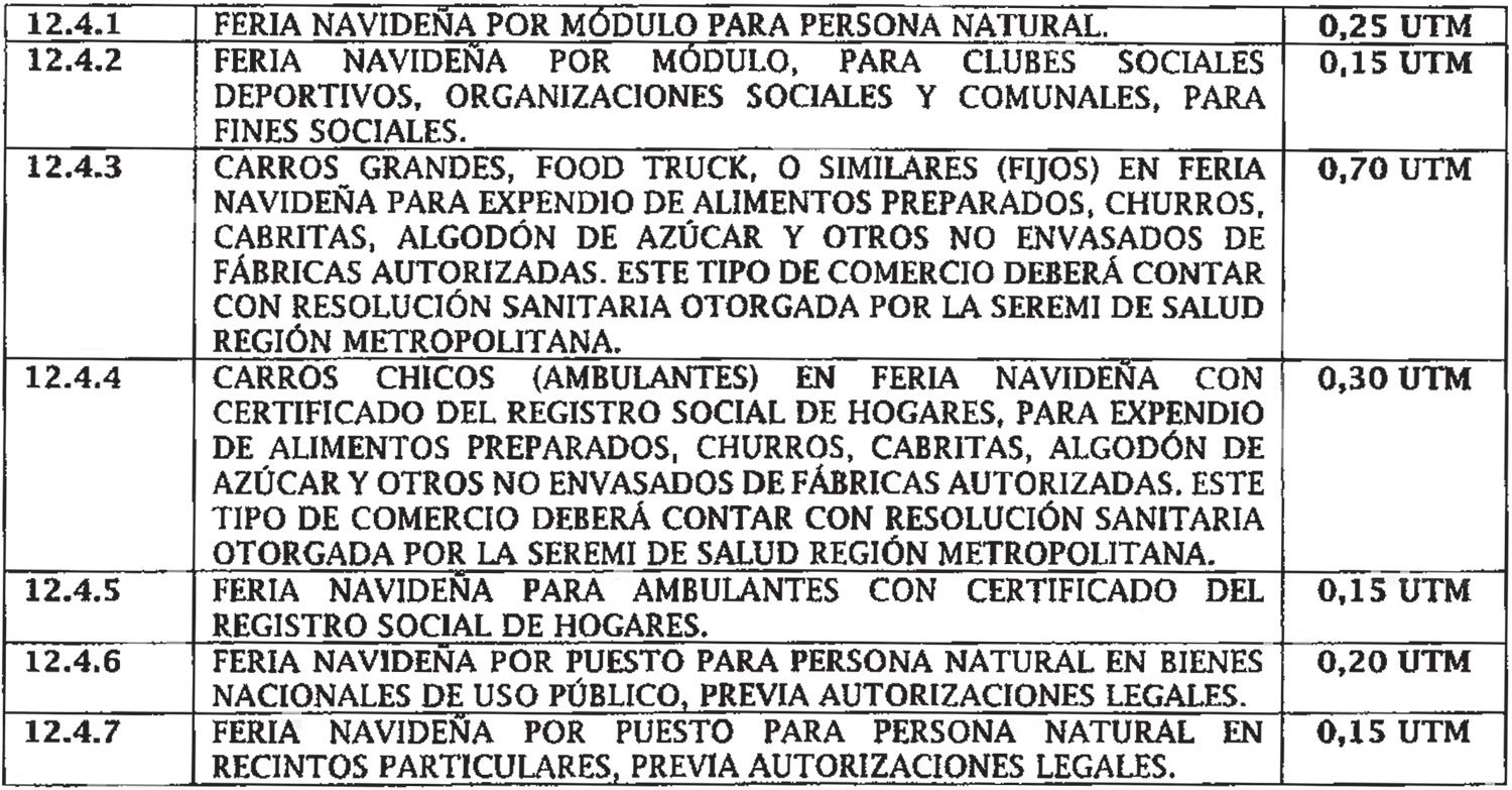 12.8.- Permiso estacionado para actividad lucrativa transitoria en ferias aledañas: Para personas naturales residentes de la comuna y previo informe de los departamentos técnico social, fiscalización municipal y Seremi de Salud Región Metropolitana, cuando corresponda: