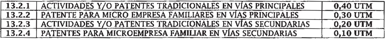 Respecto a aquellos locales que cuenten con patente de bebidas alcohólicas, para consumo al interior de su recinto, se aumentarán los derechos de publicidad en un 100% respecto a lo antes indicado en el ítem 13.2. lo anterior regirá para todo tipo de publicidad.