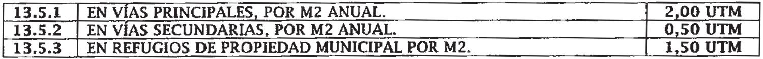 Artículo 13.- Toda publicidad que sea vista y/u oída desde la vía pública pagará los siguientes derechos por permisos: