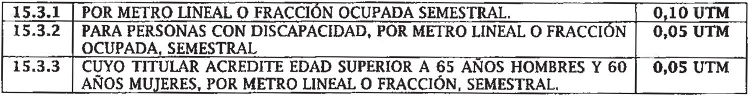 15.3.- Ocupación de B.N.U.P en puestos en ferias libres, mercados, persas y otros similares de carácter permanente.