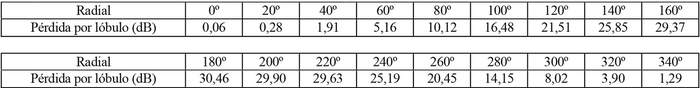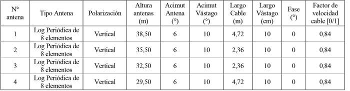 - Arreglo de antenas, de acuerdo al siguiente cuadro: