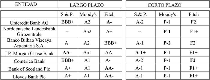 CLASIFICACIÓN DE RIESGO DE ENTIDADES BANCARIAS EXTRANJERAS