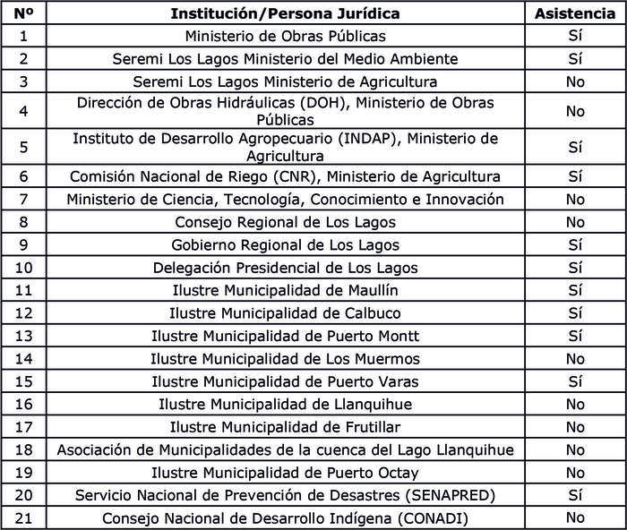 4. Identifíquense los participantes convocados para la Mesa Estratégica de Recursos Hídricos, de la Cuenca Maullín y Adyacentes: