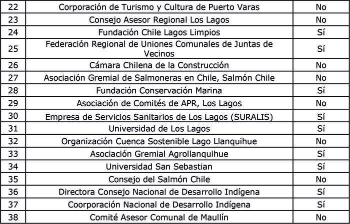 5. Incorpórese, en razón del periodo de escucha, a la Mesa Estratégica de Recursos Hídricos, de la Cuenca Maullín y Adyacentes a la siguiente persona jurídica:
