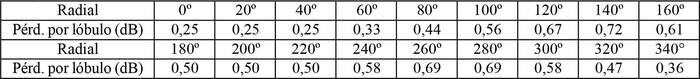 - Diagrama de radiación horizontal de acuerdo a la siguiente tabla: