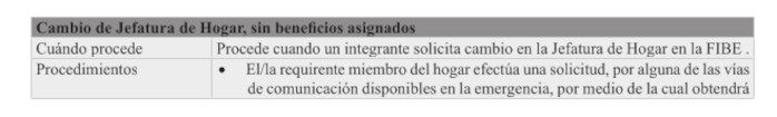 Primera ficha: el folio de la FIBE inicial, donde se mantiene a la jefatura del hogar con las ayudas de emergencia asignadas, no debe anularse, y se desvincula al resto de los integrantes.