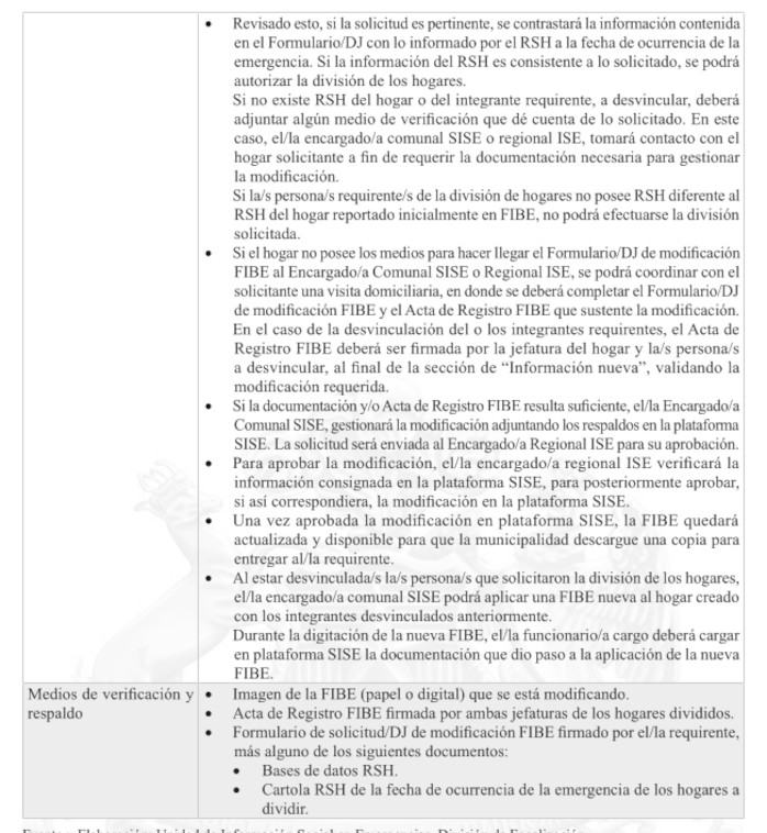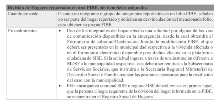 Excepcionalmente, en situaciones especiales de solicitud de división de hogares con FIBE en estado terminada y con beneficios asignados, y mientras el evento se encuentre activo en SISE, se podrá gestionar una modificación en ese sentido, previa realización de un proceso de supervisión abreviado que se encontrará regulado en el manual de supervisión de la Subsecretaría de Servicios Sociales.